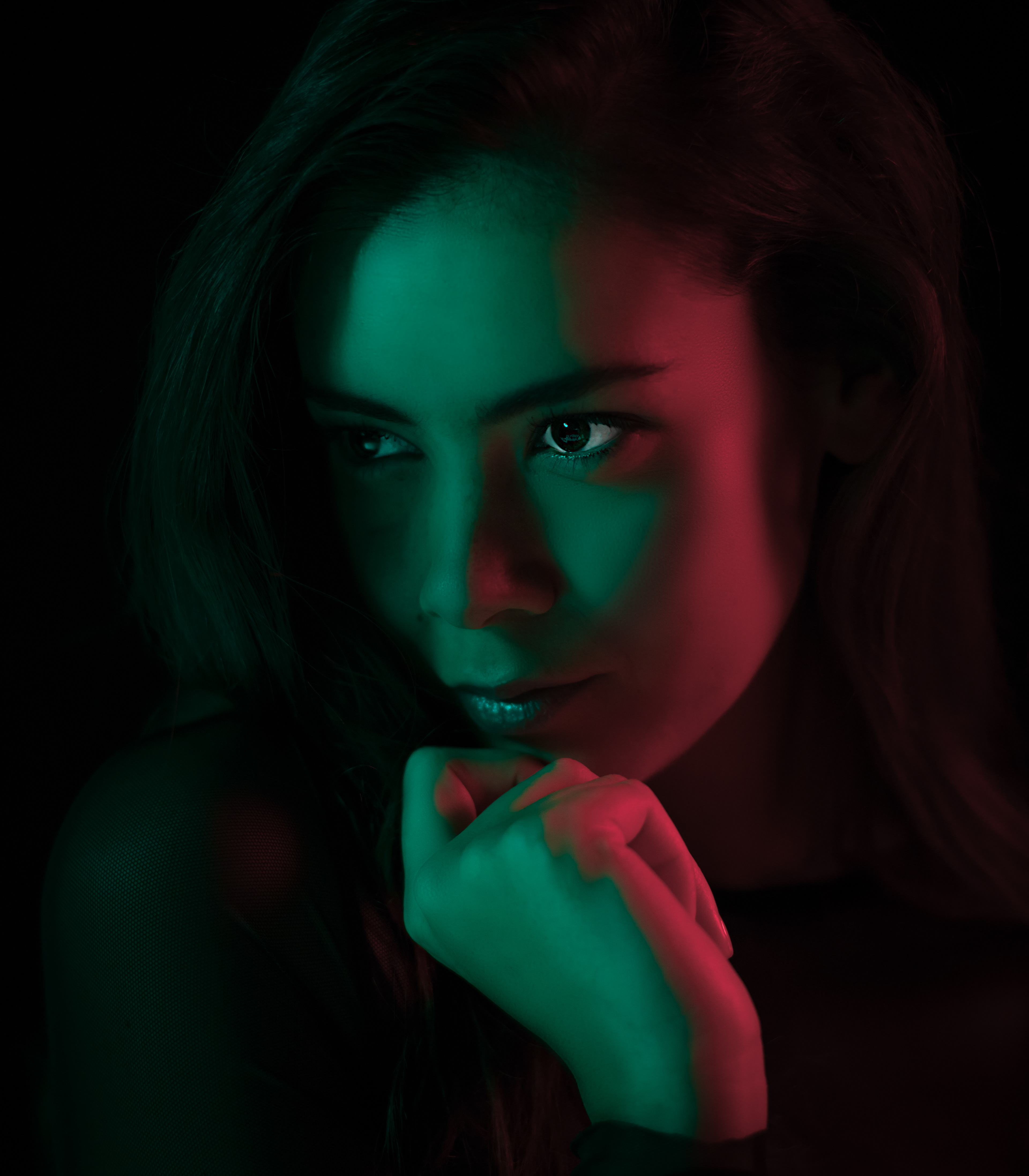 Three studio portraits of Isabelle, made with Arri Skypanels lighting.